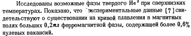 Исследованы возможные фазы твердого Не3 при сверхнизких температурах. Показано, что 'экспериментальные данные [7] свидетельствуют о существовании на кривой плавления в магнитных полях больших 0,2тл ферромагнитной фазы, содержащей более 0,6% нулевых вакансий.