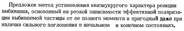 Предложен метод установления квазиупругого характера реакции выбивания, основанный на резкой зависимости эффективной поляризации выбиваемой частицы от ее полного момента и пригодный даже при наличии сильного поглощения в начальном и конечном состояниях.