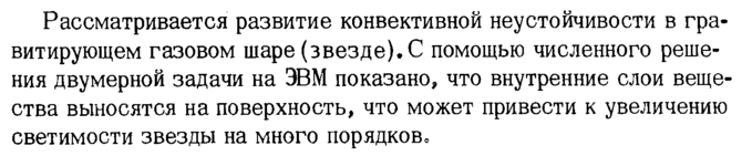 Рассматривается развитие конвективной неустойчивости в гра-витирующем газовом шаре (звезде), С помощью численного решения двумерной задачи на ЭВМ показано, что внутренние слои вещества выносятся на поверхность, что может привести к увеличению светимости звезды на много порядков.