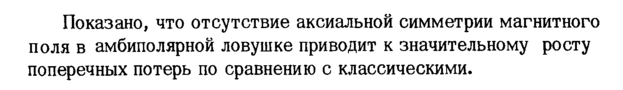 Показано, что отсутствие аксиальной симметрии магнитного поля в амбиполярной ловушке приводит к значительному росту поперечных потерь по сравнению с классическими.
