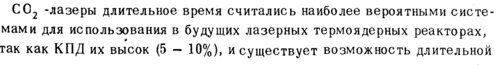 С02 -лазеры длительное время считались наиболее вероятными системами для использования в будущих лазерных термоядерных реакторах, так как КПД их высок (5 10%), и существует возможность длительной
