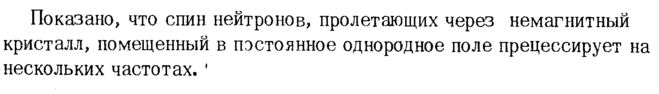 Показано, что спин нейтронов, пролетающих через немагнитный кристалл, помещенный в пэстоянное однородное поле прецессирует на нескольких частотах. '