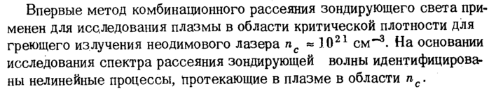 Диагностика лазерной плазмы в облети критической плотносности методом комбинационного рассеяния