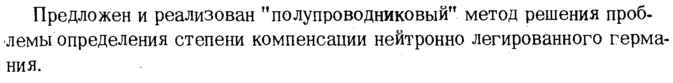 Предложен и реализован "полупроводниковый" метод решения проблемы определения степени компенсации нейтронно легированного германия.