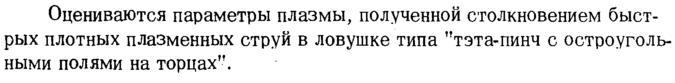 Оцениваются параметры плазмы, полученной столкновением быстрых плотных плазменных струй в ловушке типа "тэта-пинч с остроугольными полями на торцах".