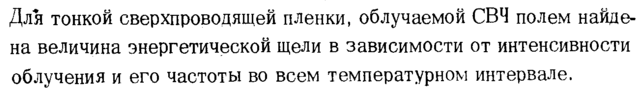 Для тонкой сверхпроводящей пленки, облучаемой СВЧ полем найдена величина энергетической щели в зависимости от интенсивности облучения и его частоты во всем температурном интервале.