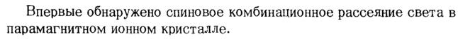 Впервые обнаружено спиновое комбинационное рассеяние света в парамагнитном ионном кристалле.