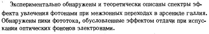 Экспериментально обнаружены и теоретически описаны спектры эффекта увлечения фотонами при межзонных переходах в арсениде галлия. Обнаружены пики фототока, обусловленные эффектом отдачи при испускании оптических фононов электронами.