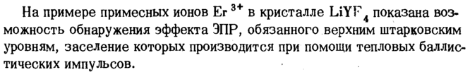На примере примесных ионов Ег 3+ в кристалле LiYF4 показана возможность обнаружения эффекта ЭПР, обязанного верхним штарковским уровням, заселение которых производится при помощи тепловых баллистических импульсов.