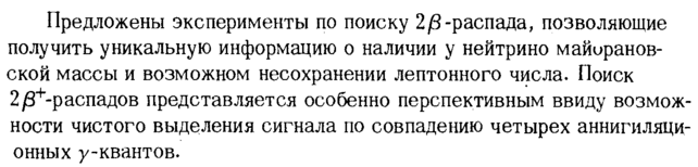 Предложены эксперименты по поиску 2β -распада, позволяющие получить уникальную информацию о наличии у нейтрино майиранов-ской массы и возможном несохранении лептонного числа. Поиск 2/3+-распадов представляется особенно перспективным ввиду возможности чистого выделения сигнала по совпадению четырех аннигиляци-онных у-квантов.