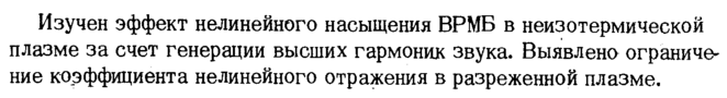 Изучен эффект нелинейного насыщения ВРМБ в неизотермической плазме за счет генерации высших гармоник звука. Выявлена ограничение коэффициента нелинейного отражения в разреженной плазме.