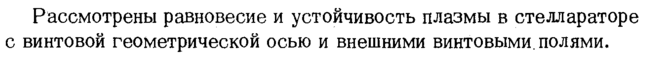 Рассмотрены равновесие и устойчивость плазмы в стеллараторе с винтовой геометрической осью и внешними винтовыми, полями.