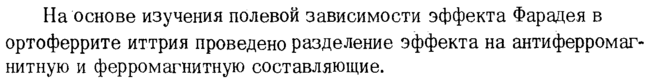 На основе изучения полевой зависимости эффекта Фарадея в ортоферрите иттрия проведено разделение эффекта на антиферромагнитную и ферромагнитную составляющие.
