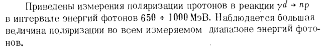 Приведены измерения поляризации протонов в реакции yd -* пр в интервале энергий фотонов 650 * 1000 МэВ. Наблюдается большая величина поляризации во всем измеряемом диапазоне энергий фотонов.