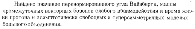 Найдено значение перенормированного угла Вайнберга, массы промежуточных векторных бозонов слабого взаимодействия и время жизни протона и асимптотически свободных и суперсимметричных моделях большого объединения.