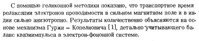 С помощью геликонной методики показано, что транспортное время релаксации электронов проводимости в сильном магнитном поле и в индии сильно анизотропно. Результаты количественно объясняются на основе механизма Гуржи Копелиовича [1], детально'учитывающего баланс квазиимпульса в электрон-фононной системе.