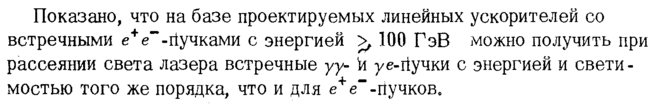 Показано, что на базе проектируемых линейных ускорителей со встречными е+е~-г!учками с энергией >, 100 ГэВ можно получить при рассеянии света лазера встречные ууto уе-г!учки с энергией и светимостью того же порядка, что и для е+е~-пучков.