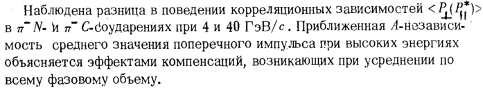 Наблюдена разница в поведении корреляционных зависимостей <^ji^*)> в тГ Nй π" С-0оударениях при 4 и 40 ГэВ/с, Приближенная Л-йезависи' мость среднего значения поперечного импульса при высоких энергиях объясняется эффектами компенсаций, возникающих при усреднении по всему фазовому объему.