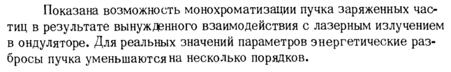 Монохроматизация пучков заряженных частиц лазерным импульсом в ондуляторе
