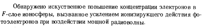 Обнаружено искуственное повышение концентрации электронов в F-слое ионосферы, вызванное усилением ионизирующего действия фотоэлектронов при воздействии мощной радиоволны.