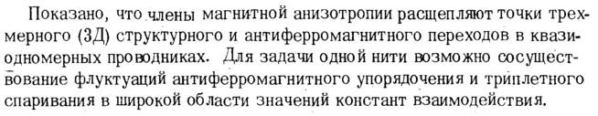 Показано, что члены магнитной анизотропии расщепляют точки трехмерного (ЗД) структурного и антиферромагнитного переходов в квазиодномерных проводниках. Для задачи одной нити возможно сосуществование флуктуаций антиферромагнитного упорядочения и триплетного спаривания в широкой области значений констант взаимодействия.