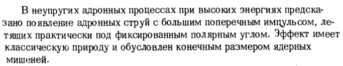 В неупругих адронных процессах при высоких энергиях предсказано появление адронных струй с большим поперечным имцульсом, летящих практически под фиксированным полярным углом. Эффект имеет классическую природу и обусловлен конечным размером ядерных мишеней.