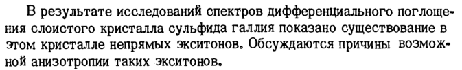В результате исследований спектров дифференциального поглощения слоистого кристалла сульфида галлия показано существование в этом кристалле непрямых экситонов. Обсуждаются причины возможной анизотропии таких экситонов.
