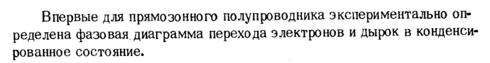 Впервые для прямозонного полупроводника экспериментально определена фазовая диаграмма перехода электронов и дырок в конденсированное состояние.