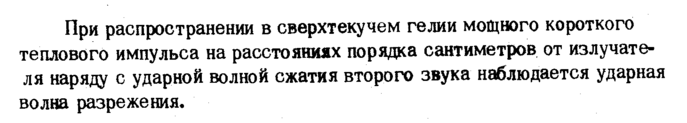 При распространении в сверхтекучем гелии мощного короткого теплового импульса на расстояниях порядка сантиметров от излучателя наряду с ударной волной сжатия второго звука наблюдается ударная волна разрежения.