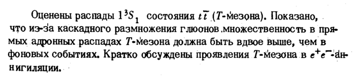Оценены распады 13Sχ состояния tt (Г-Лезона). Показано, что иэ-За каскадного размножения глюонов .множественность в прямых адро иных распадах Г-^езона должна быть вдвое выше, чем в фоновых событиях. Кратко обсуждены проявления Т-йезона в e+e^-dn-нигиляции.