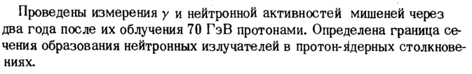 Проведены измерения у и нейтронной активностей мишеней через два года после их облучения 70 ГэВ протонами. Определена граница сечения образования нейтронных излучателей в протон-ядерных столкновениях.