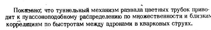Показано? что туннельный механизм развала цветных трубок приводит к пуассоноподобному распределению по множественности и близкиь корреляциям по быстротам между адронами в кварковых струях.