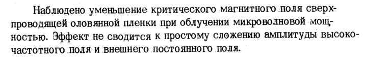 Наблюдено уменьшение критического магнитного поля сверхпроводящей оловянной пленки при облучении микроволновой-мощностью. Эффект не сводится к простому сложению амплитуды высокочастотного поля и внешнего постоянного поля.