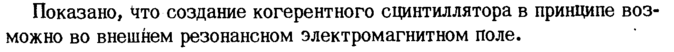 Показано, ^то создание когерентного сцинтиллятора в принципе возможно во внешнем резонансном электромагнитном поле.