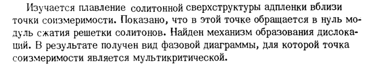 Изучается плавление солитонной сверхструктуры адпленки вблизи точки соизмеримости. Показано, что в этой точке обращается в нуль модуль сжатия решетки солитонов. Найден механизм образования дислокаций. В результате получен вид фазовой диаграммы, Для которой точка соизмеримости является мультикритической.