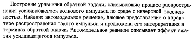 Построены уравнения обратной задачи, бписывающие процесс распространения усиливающегося волнового импульса по среде с инверсной заселен-нрстыо. Найдено автомодельное решение, Дающее представление о характере распространения такого импульса и предложена его интерпретация в терминах обратной задачи. Автомодельное решение описывает эффект сжатия усиливающегося импульса.