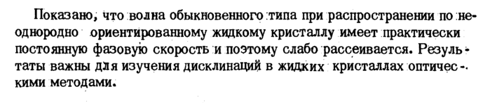 Показано, что волна обыкновенного типа при распространении по неоднородно ориентированному жидкому кристаллу имеет практически постоянную фазовую скорость и поэтому слабо рассеивается. Результаты важны для изучения дисклинаций в жидаих кристаллах оптичес кими методами.
