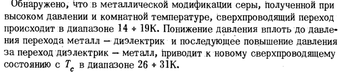 Сверхпроводимость серы при высоком давлении