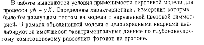 В работе выясняются условия применимости партонной модели для процесса y/Y -> γΧ. Определены характеристики, измерение которых было :бы наилучшим тестом на модели с нарушенной цветовой симметрией. В рамках объединенной модели с целозарядными кварками анализируются имеющиеся экспериментальные данные по глубоконеупру-гому комптоновскому рассеянию фотонов на протоне.