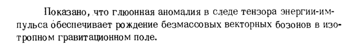 Показано, что глюонная аномалия в следе тензора энергии-импульса обеспечивает рождение безмассовых векторных бозонов в изо тропном гравитационном поле.