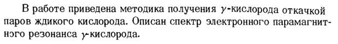 В работе приведена методика получения у-кислорода откачкой паров ждикого кислорода. Описан спектр электронного парамагнитного резонанса у-кислорода.