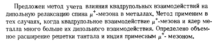 Предложен метод учета влияния квадрупольных взаимодействий на дипольную релаксацию спина μ'^-мезона в металлах. Метод применим в тех случаях, когда квадрупольное взаимодействие μ^-мезона и ядер металла много больше их дипольного взаимодействия. Определено объемное расширение решетки тантала и индия примесным μ+мезоном.