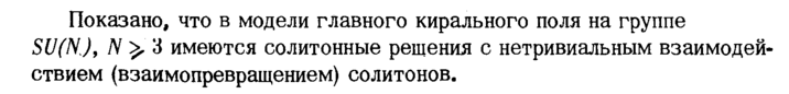 Показано, что в модели главного кирального поля на группе SU(NJ, N ^ 3 имеются солитонные решения с нетривиальным взаимодействием (взаимопревращением) солитонов.