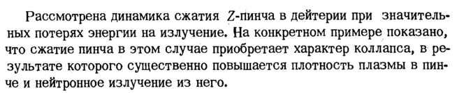 Рассмотрена динамика сжатия Z-пинча в дейтерии при значительных потерях энергии на излучение. На конкретном примере показано, что сжатие пинча в этом случае приобретает характер коллапса, в результате которого существенно повышается плотность плазмы в пин-че и нейтронное излучение из него.