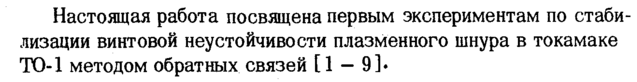 Настоящая работа посвящена первым экспериментам по стабилизации винтовой неустойчивости плазменного шнура в токамаке ТО-1 методом обратных связей [1 9]·
