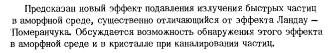 Предсказан новый эффект подавления излучения быстрых частиц в аморфной среде, существенно отличающийся от эффекта Ландау — Померанчука. Обсуждается возможность обнаружения этого эффекта в аморфной среде и в кристалле при каналировании частиц.