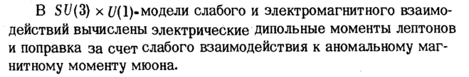 В Sf/(3) χ ί/(1).модели слабого и электромагнитного взаимодействий вычислены электрические дипольные моменты лептонов и поправка за счет слабого взаимодействия к аномальному магнитному моменту мюона.