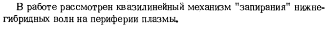 В работе рассмотрен квазилинейный механизм "запирания" нижне-гибридных волн на периферии плазмы.