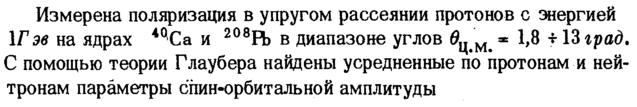 Измерена поляризация в упругом рассеянии протонов с энергией \Гэв на ядрах 40,Са и 2081Ъ в диапазоне углов 0цвМв~ 1,8 *13 град. С помощью теории Глаубера найдены усредненные по протонам и нейтронам параметры спин-орбитальной амплитуды