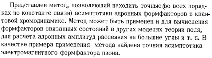 Асимптотика адронных формфакторов в квантовой хромодинамике